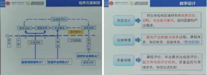陈院长首先向老师们讲解了“学生中心、产出导向、持续改进”的教育质量理念,并介绍了OBE理念的原理和方法。他指出,工程教育专业认证是国际通行的工程教育质量保障制度,也是实现工程教育国际互认和工程师资格国际互认的重要基础,其核心是要确认工科专业毕业生达到行业认可的既定质量标准要求,是一种以培养目标和毕业出口要求为导向的合格性评价。工程教育专业认证要求专业课程体系设置、师资队伍配备、办学条件配置等都围绕学生毕业能力达成这一核心任务展开,并强调建立专业持续改进机制和文化以保证专业教育质量和专业教育活力。