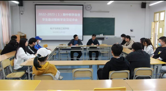 为认真贯彻落实教务处《关于开展2022-2023学年第一学期期中教学自查的通知》精神,深入了解学生学习生活动态,进一步加强学风教风建设,11月2日下午,买球体育官方网站在江北校区一号教学楼1307教室召开学生座谈会。学院党总支副书记蔡正旺、副院长宋权华出席座谈会,2020级至2022级各班共30余名学生代表参加会议。