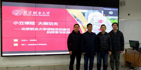 为了推动我院《创新思维》、《互联网+》、《现代教育技术》三门“课程思政”示范课建设,2020年12月13日,买球体育官方网站组织三个“课程思政”示范课建设项目组成员在科技楼A501参加了由北京联合大学组织举办的“‘小立课程大做功夫’——课程思政实践及案例分享直播会”,培训会为期1天。