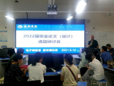 为提高2022届毕业生毕业论文(设计)质量,严格按照学校文件要求,加强毕业论文(设计)质量管理。电子商务系和数字媒体系在2021届毕业论文(设计)工作取得良好效果的基础上,开展教研活动,安排部署2022届毕业论文(设计)的相关工作。两个专业的全体任课教师参加活动,活动由分别由赵志强和宋权华主持。