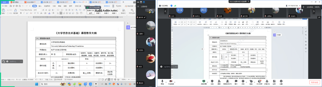 活动伊始,李宝对于学校教务处“基于OBE理念的课程教学大纲编写”的理念进行解读。随后,《现代教育技术》、《大学信息技术基础》课程负责人分别从课程基本信息、课程目标、课程目标与毕业要求支撑关系、课程内容、教学方法与手段、课程考核、评价标准等方面对课程进行了详细介绍。全体教师围绕自己承担的课程从课程内容、课程思政、课程教学方法、课程考核等方面集思广益,深入交流研讨,提供了可参考的修改建议。讨论结束后,李宝对于各个专业的公共计算机类课程大纲修订工作进行了任务分工安排,并强调了修订过程中的注意事项。