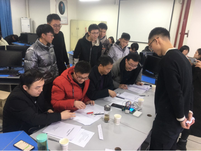 比赛环节包括作品展示讲解和质疑答辩两个环节,各个团队展开了激烈的角逐。最终,来自19级数字媒体专业的蒋安然、许梦、王嘉慧团队带来的针对视障患者的“手表探测仪”项目和来自18级物联网工程专业的刘欢、赵文博、周冬团队带来的针对校园环境卫生的“智能垃圾桶”项目分别荣获创意组和创作组的一等奖。此外,“云医”、“PF智能安防系统”、“土壤温湿度PH值检测与控制”、“密码锁”、“数字时钟”、“手持空气检测仪”等项目荣获本次比赛的二等奖。“宿舍宝”、“智能可控窗帘”、“电梯通风系统”、“医家医疗系统”、“推箱子小游戏”等项目荣获了本次比赛的三等奖。