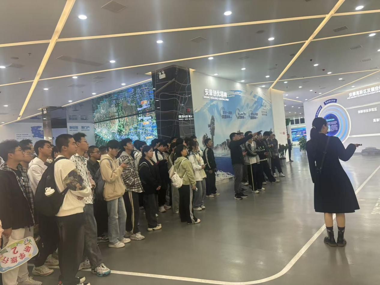 在高新安康高新规划展览馆,同学们深入了解了高新区的整体规划与发展蓝图。从地理信息数据到产业规划布局,每一个板块都蕴含着丰富的数据资源,为同学们在数据科学领域的学习提供了实际案例。学生们积极与解说员互动,在观看完安康现代化短片后,同学们对所学专业有了更高期望。