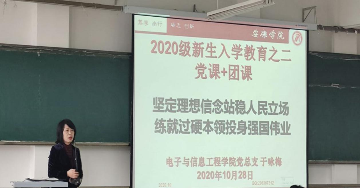 10月28日,买球体育官方网站在江北1301教室开展了主题为“坚定理想信念站稳人民立场,练就过硬本领投身强国伟业”的入学教育第二讲,党总支书记于咏梅主讲,全体2020级新生参加。