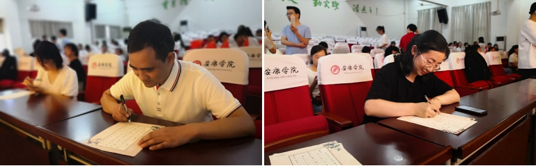 最后,党总支和学院工会组织教师开展了“学党史 书情怀”硬笔书法展示活动。书写现场,老师们认真专注,把对党的热爱和学习党史的热情融入到一笔一顿中,展现出买球体育官方网站教师扎实的基本功、昂扬向上的精神状态和爱党爱国的情怀。