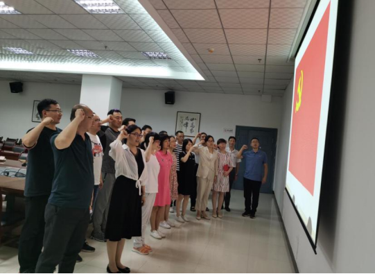 最后,在今天这个特殊的日子里,教工第一党支部全体党员又一次举起自己的右手,重温入党誓词,庄严的向党组织宣誓。宣誓是一种形式,更是一种激励,一种鞭策,一种对信仰的强化。
