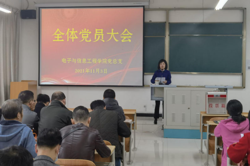 2021年11月3日下午,买球体育官方网站在江北1117教师召开全体党员大会,选举出席学校第三次党代会代表。会议由党总支书记于咏梅主持。