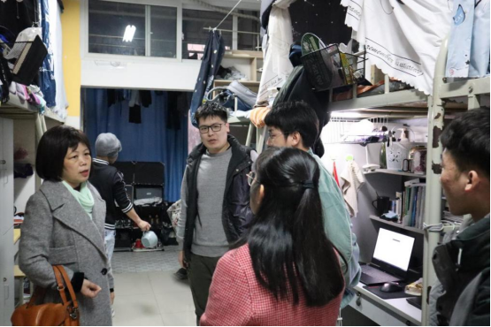 买球体育官方网站党总支书记于咏梅、辅导员程晓梅走访党员示范宿舍