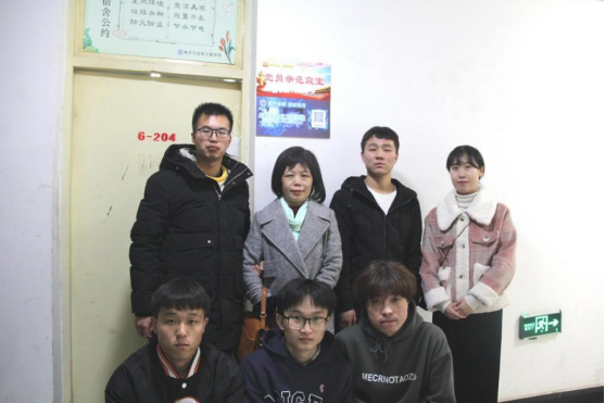 买球体育官方网站党总支书记于咏梅、辅导员李章雨与党员示范宿舍同学合影留念