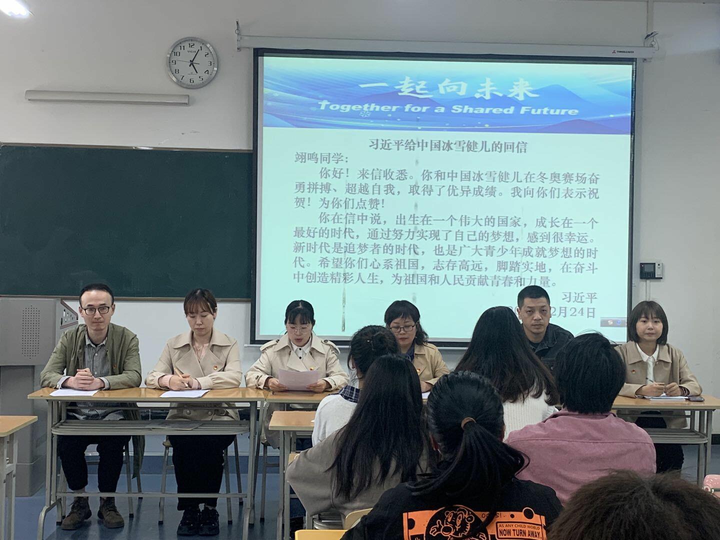 学生第一党支部中共预备党员廉好:习近平总书记给中国单板滑雪运动员苏翊鸣回信中提到“新时代是追梦者的时代,也是广大青少年成就梦想的时代。我认为这其实不仅仅是对奋勇拼搏、超越自我的中国冰雪健儿的肯定,更是对所有追梦青年的一种极大鼓舞。当代青年既生逢其时,也重任在肩,我们既是追梦者,也是圆梦人。在我看来,作为新时代青年,我们应志存高远、忠于祖国,敢于担当、勇于奋斗,勤奋学习、锤炼身心,做具有过硬本领和高尚品格的接班人。我们要学习中国冰雪健儿奋勇拼搏、超越自我的精神,不断奋斗,追梦圆梦,在奋斗中创造精彩人生!