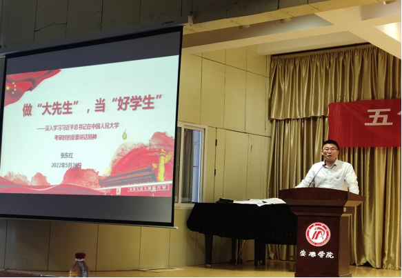 张校长指出,广大师生要时刻牢记习近平总书记的殷切期盼和寄语,知重负,明使命,不断自省自励,牢记党的教诲,赓续红色血脉,主动作为,敢为先锋。全院教职工要进一步统一思想,不断提高政治站位和育人水平,增强使命感和责任感,用习近平新时代中国特色社会主义思想铸魂育人,当好学生成长的引路人,努力为党和国家事业发展夯实人才根基、汇聚智慧力量。