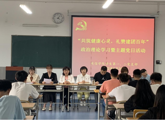 2022年是中国共产主义青年团成立100周年。一百年前,中国社会主义青年团诞生,由此揭开党的青年运动新篇章,也开启了共青团紧跟党为实现民族复兴不懈奋斗的青春征程。同时,5月25日是“全国大学生心理健康日”,525的谐音即为“我爱我”,提醒大学生珍惜生命,关爱自己。5月25日下午,在江北校区1321教室,买球体育官方网站学生第一、二党支部联合开展政治理论学习暨党日活动,主题为“共筑健康心灵,礼赞建团百年”。党总支书记于咏梅,党总支组织委员成英丽,学生第一党支部书记程晓梅,组织(纪检)委员、团总支书记张宇航,学生第二党支部书记李章雨,组织(纪检)委员、学工办主任石纭昊,辅导员吕以宁以及第一、二党支部全体党员参加,活动由学生第二党支部书记李章雨主持。