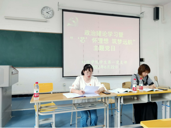 6月22日下午,买球体育官方网站学生第一党支部在江北校区1321教室召开党员大会, 党支部书记程晓梅为全体党员、部分发展对象和入党积极分子讲了一堂别开生面的党课。辅导员吕以宁全程听课。