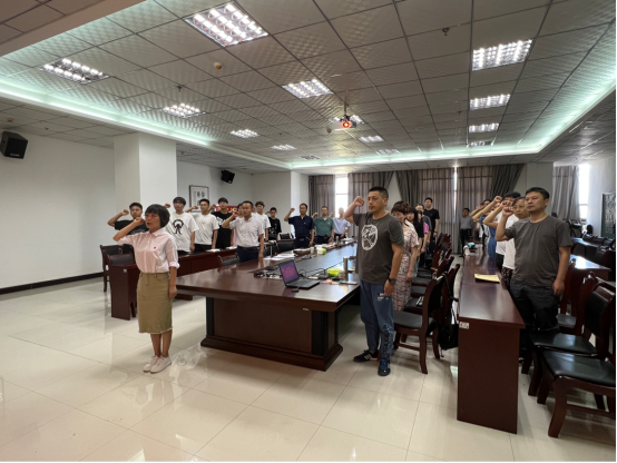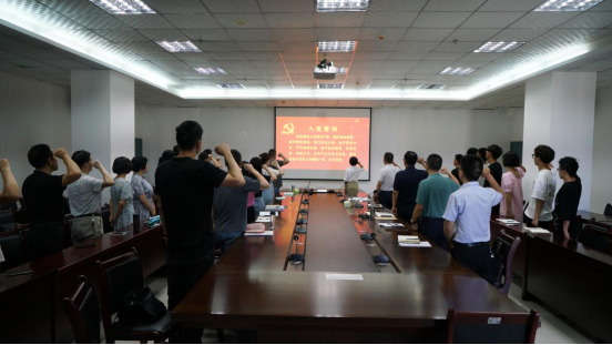 会议最后,于咏梅带领全体党员重温入党誓词。全体党员紧握右拳,向着党旗庄严宣誓,铿锵有力的誓言表明全体党员坚定理想信念,践行初心使命的决心。