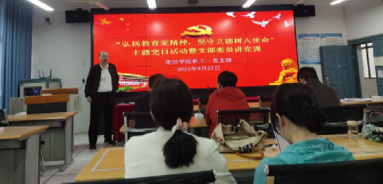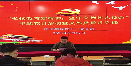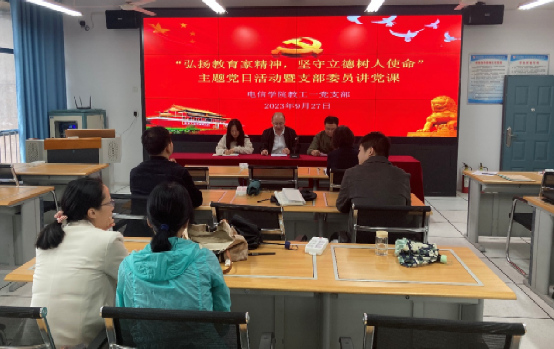 2023年9月27日下午,买球体育官方网站教工第一党支部开展“弘扬教育家精神,坚守立德树人使命”主题党日活动暨支部委员讲党课。活动由教工第一党支部书记赵志强主持,支部全体党员参加本次活动。