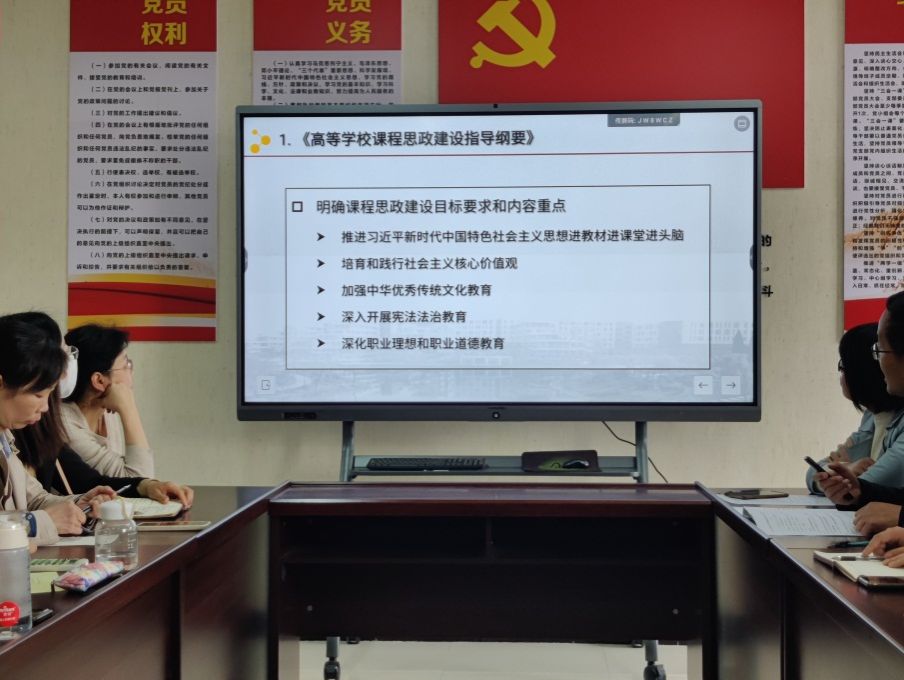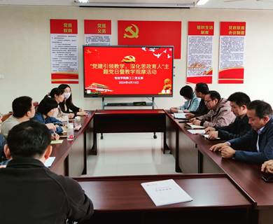 为了充分发挥教师党员的课程思政育人主体功能,2024年4月10日下午,买球体育官方网站教工第二党支部在B702会议室开展“党建引领教学,深化思政育人”主题党日暨教学观摩活动。活动由教工第二党支部书记丁礼磊主持,支部全体教师参加了本次活动。