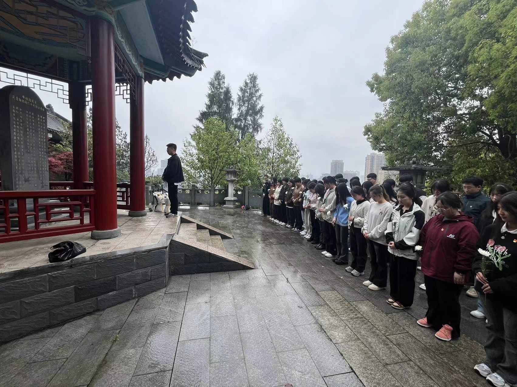 英烈精神永垂不朽,后辈铭记矢志不忘。牛蹄岭上,烈士墓前,伴随着庄严的国歌,全体师生肃立,向为中国人民解放事业和共和国建设事业英勇献身的烈士默哀,手持黄菊,依次敬献,表达对先烈的无限敬仰和深情追思。