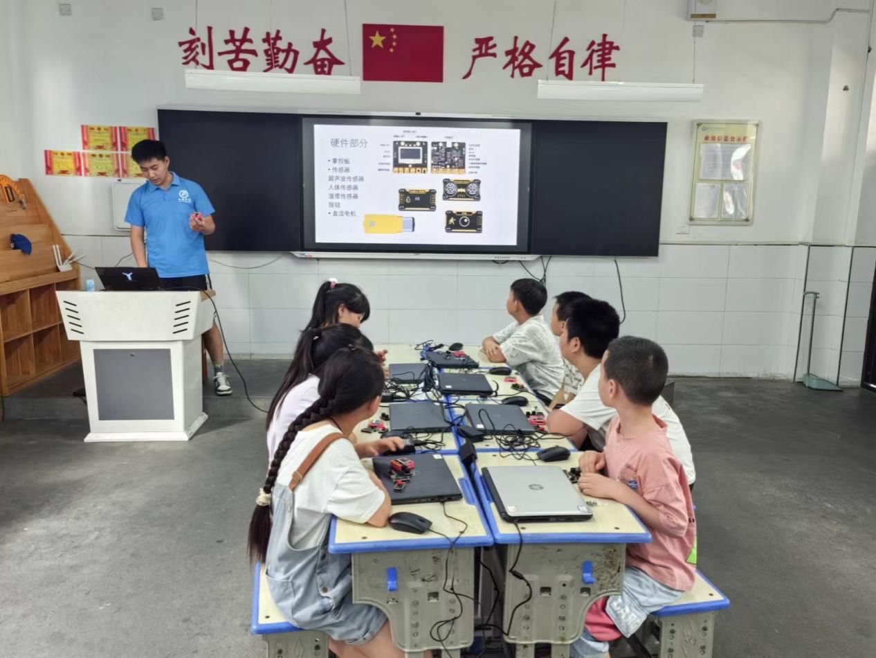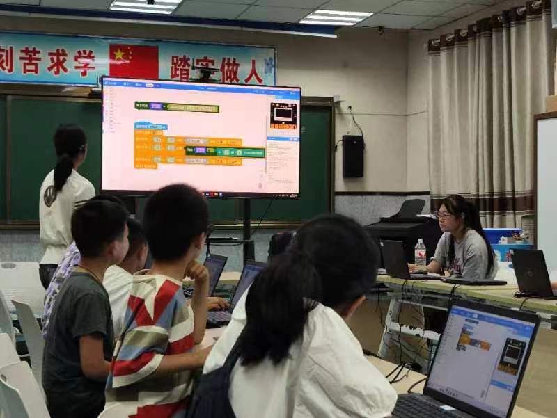 初步了解当地普通话推广现状后,学院实践团分成两组分别前往茅坪镇中心小学、宋家镇中心小学开展为期5天的推普活动。实践队员在课堂上向孩子们阐明学好普通话的深远意义,引导他们认识到掌握普通话对文化教育、民族团结、社会发展等都起着关键作用。并巧妙地将普通话教学融入到日常教学中,他们设计并实施了一系列富有趣味性的编程课程,成功地营造出了积极、愉悦的课堂氛围。这不仅让两所小学的孩子们在轻松愉快的环境中学习普通话,还让他们深刻体会到了中华语言文化的深厚底蕴和独特魅力。