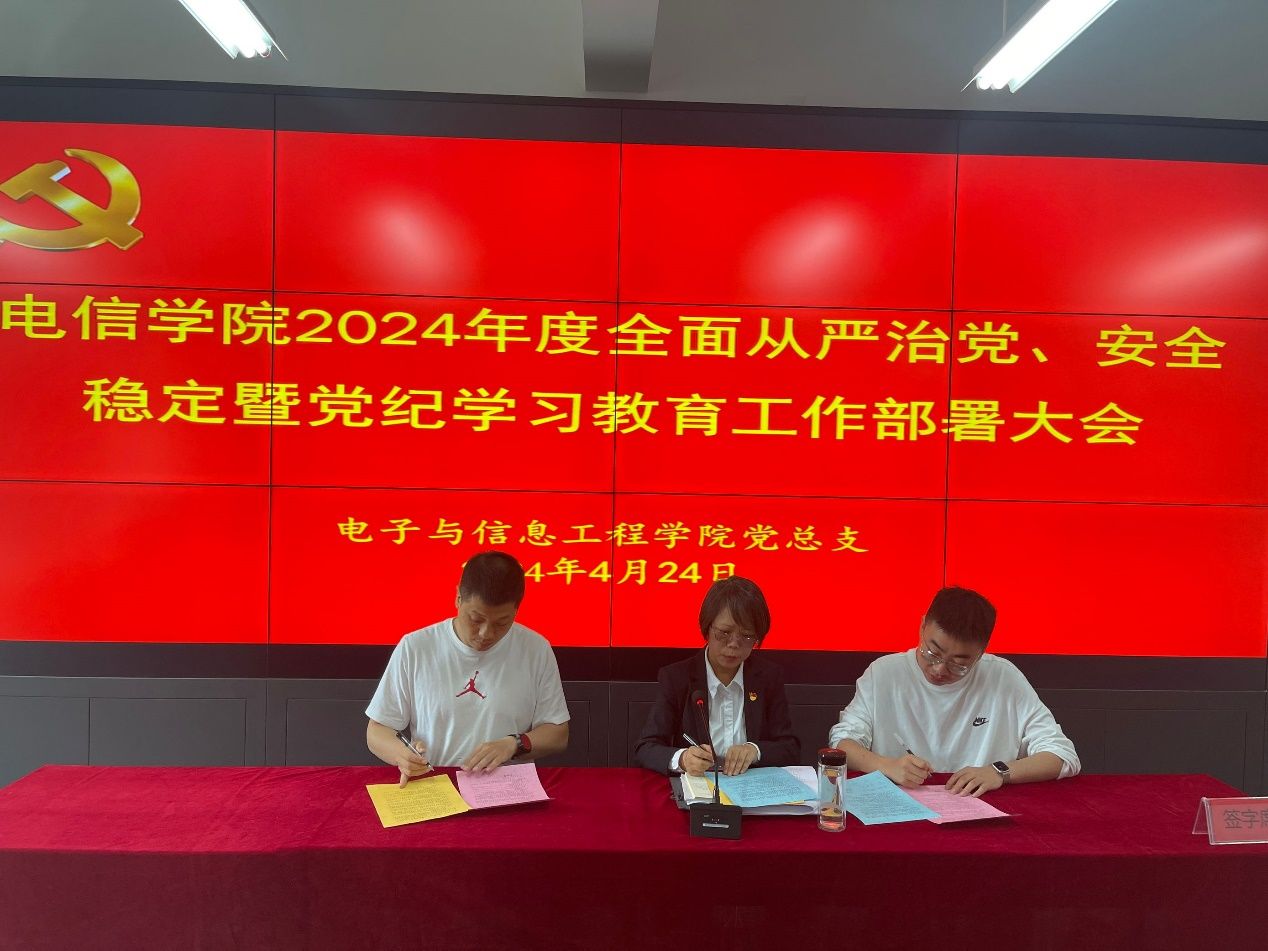 党总支书记于咏梅分别与党支部、学工办人员翟子轩、石纭昊签订全面从严治党、安全稳定工作责任书和意识形态工作责任书。