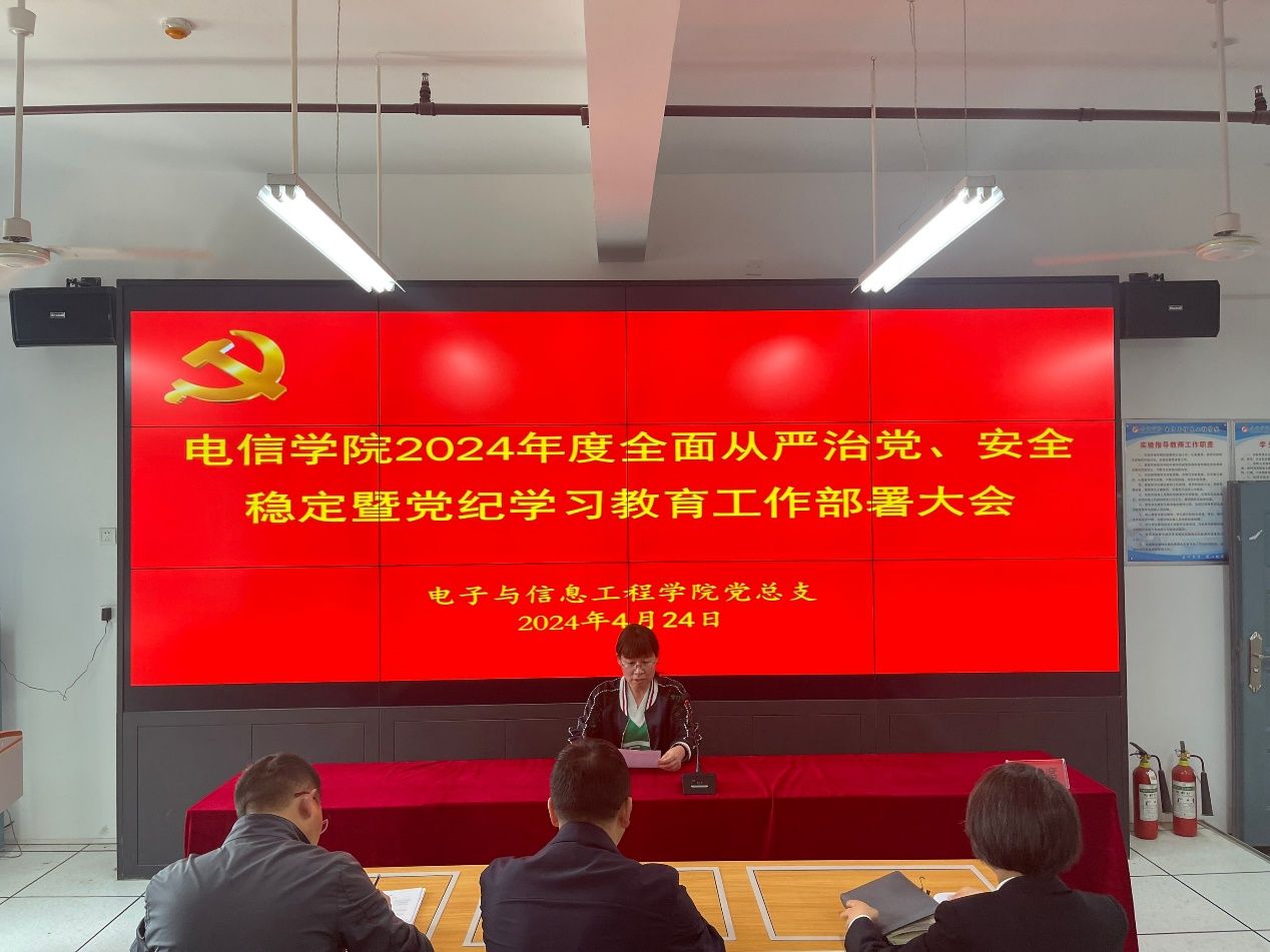 为深入学习贯彻习近平新时代中国特色社会主义思想、党的二十大精神,深入贯彻落实中省纪委全会精神,认真扎实开展党纪学习教育,深入贯彻落实中省和学校党委全面从严治党暨安全稳定和党纪学习教育工作部署会议精神,买球体育官方网站于4月24日在江北校区逸夫科技楼B602召开全面从严治党、安全稳定暨党纪学习教育工作部署大会,买球体育官方网站全体教职工参加,会议由党总支书记于咏梅主持。