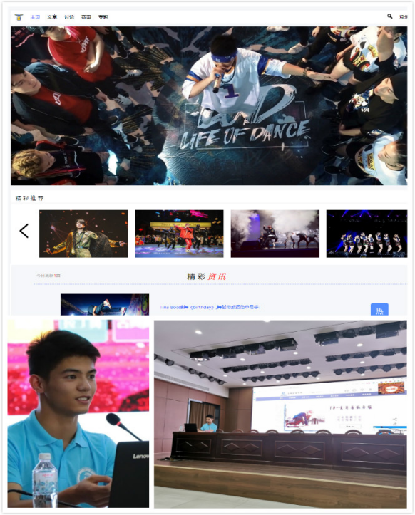 在科普展示环节中,由方昕老师指导的学生白佳乐向白河县职业教育中心的师生介绍了自己在“计算机设计大赛”中的获奖作品《FD爱舞易服务馆》。白佳乐同学首先结合自己热爱舞蹈的爱好和经历讲述了本作品设计初衷,聚焦舞蹈爱好者的需求设计了一个网站,网站包含专业知识、教学视频、交流论坛、舞蹈竞赛、舞蹈服装和用品商城等模块。白佳乐同学向大家演示了目前网站的功能,并介绍了项目中涉及的关键技术,并号召同学们将自己的专业和生活、兴趣有机结合,相互促进。