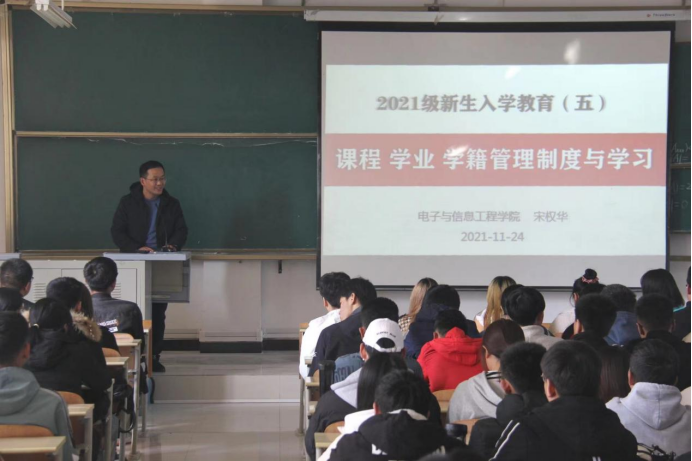 20211124日下午14:30,买球体育官方网站于1203教室开展新生入学教育第五讲本次讲座以“课程 学业 学籍管理制度与学习”为主题。2021级全体新生参加讲座,本次讲座由买球体育官方网站副院长宋权华老师主讲。