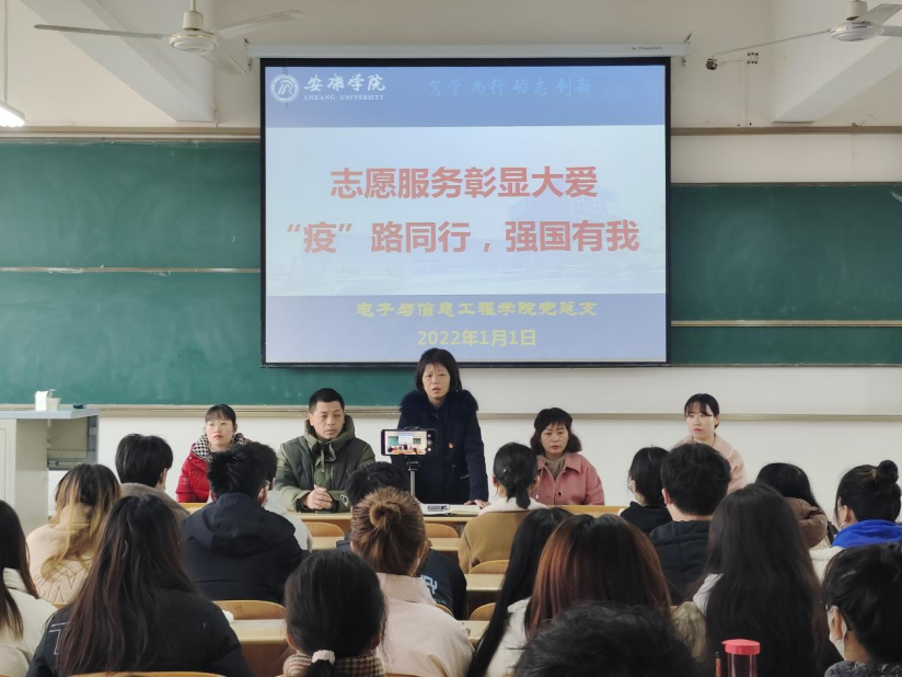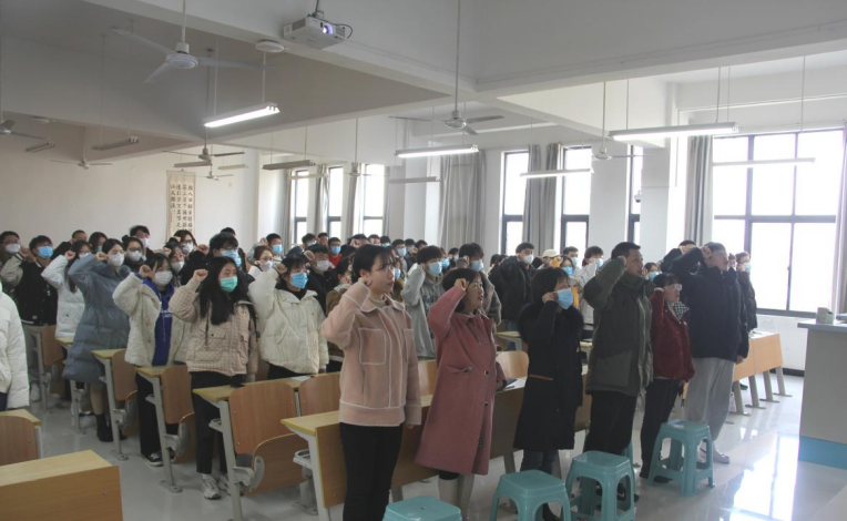 疫情面前,没有人是旁观者,每个人都是责任人。为落实买球体育官方网站新冠肺炎疫情防控工作要求,切实做好疫情防控工作,凝聚学生志愿者力量,为师生营造安全稳定、和谐有序的校园环境氛围。1月1日,买球体育官方网站在1323教室召开以“志愿服务彰显大爱,‘疫’路同行强国有我”为主题的志愿者动员大会。买球体育官方网站党总支书记于咏梅、副书记蔡正旺、学工办主任石纭昊、辅导员成英丽、李章雨、程晓梅、张宇航以及由学生党员、团员、积极分子、团学干部、各班班委、退役大学生士兵组成的青年志愿者疫情防控突击队参加此次会议。
