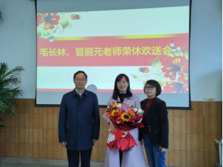 会议最后,由于咏梅为两位老师献花致欢送词,全体教师拍照留念。时代在发展,学院在进步,相信在毛长林、管丽元两位老师职业精神的感召下,我们年轻一代的教师,将继续他们的事业,在自己所热爱的教师岗位上持续发光发热,做“四有好老师”,当好“四个引路人”。同时也衷心的祝愿毛长林、管丽元两位老师心情舒畅,家庭幸福,健康长寿,平安喜乐!也希望两位老师在合理、科学安排好自己退休生活的同时能一如既往的关注买球体育官方网站的发展和人才培养,一如既往的为买球体育官方网站的发展建言献策。希望我们其它教师继承两位退休教师的优秀传统,坚守育人初心,做好学生的引路人,为党育好人、为国育好才。