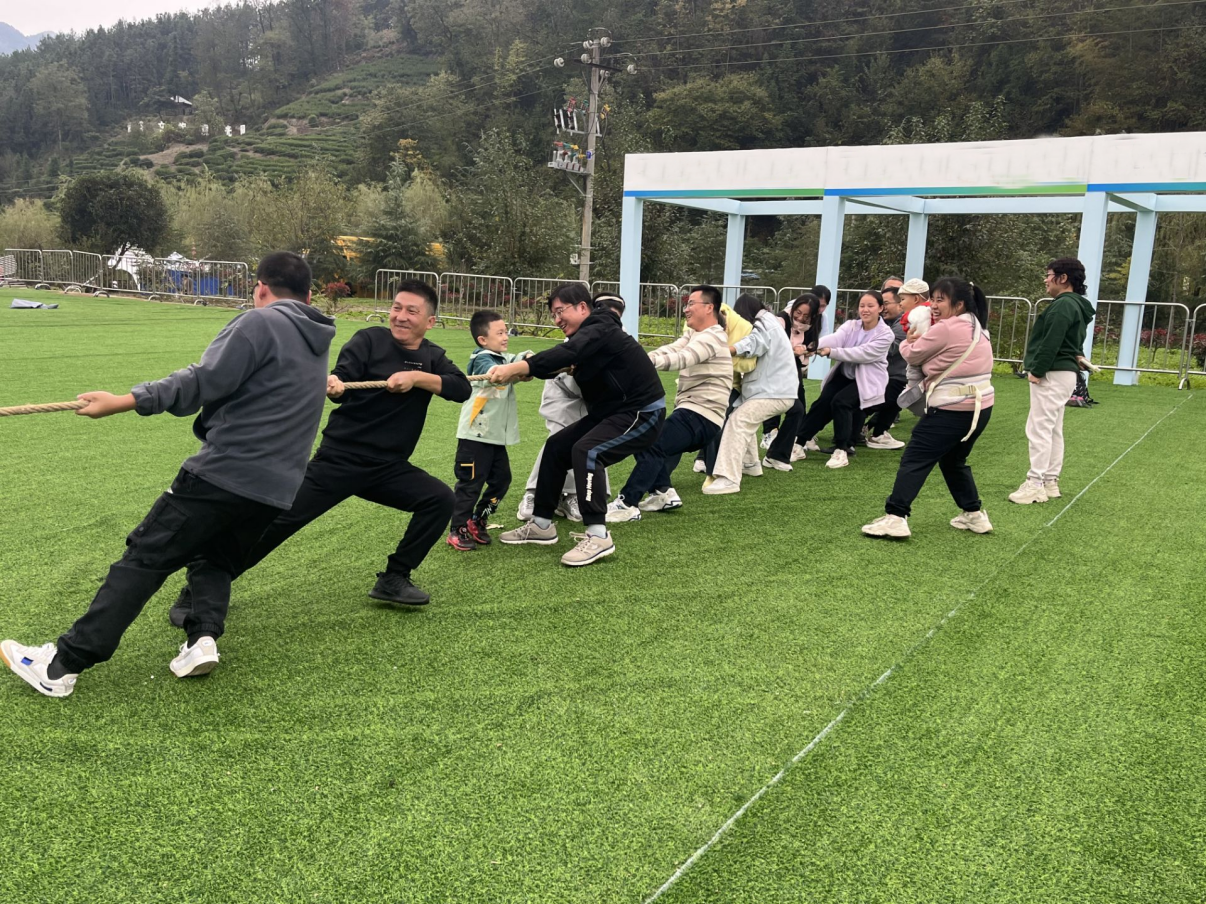 运动会的最后一项是拔河比赛。所有教职工都积极参与,随着哨声的发出,以教工第一党支部和教工第二党支部为主体组建的两支队伍成员用尽全力拉扯着绳子,场面激烈而欢快。经过一番角逐,最终教工第一党支部组建的一队凭借团队默契和必胜的信念赢得了比赛,凝聚了教职工力量,坚定了战胜困难的信心。