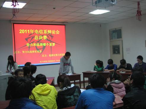 10月27日晚,电子信息工程系团总支在1429室举行买球体育官方网站2011年金雀杯精英辩论赛系内选拔赛决赛。