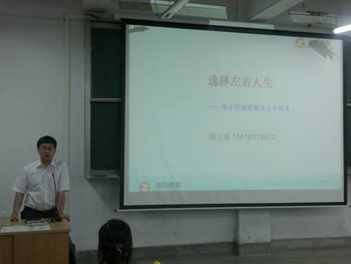 报告会中,刘立强介绍了凌阳科技的相关资料和发展过程,分析了目前大学生“就业难”问题,报告了电子行业发展现状和嵌入式发展前景,最后对电子行业就业问题和就业方向做出分析。