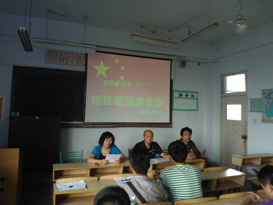 同学们积极发言,从中日经济,政治,军事等多方面发表了自己的看法,表示对9.15西安游行中的做法应给与痛斥,应该努力学习,以优异的成绩来抒发自己的爱国情怀。