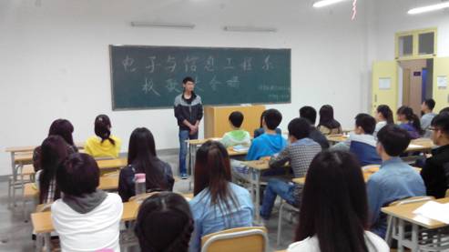 电信系利用晚自习时间组织学生学唱校歌。校歌学唱分为三个阶段,第一阶段各团支部委员进行学唱,第二阶段各团支部学唱,第三阶段在各支部之间进行唱校歌比赛。