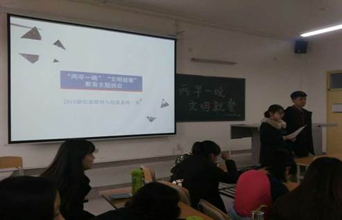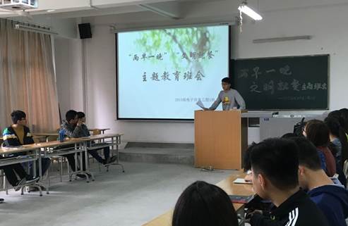 2016年11月7日至11月18日,买球体育官方网站响应学校号召开展“两早一晚”和“文明就就餐”主题教育活动。各班班委积极组织,以主题班会的形式开展此次教育活动,从“两早一晚”的纪律教育到“文明就餐”素质教育,使同学们对守纪律的重要性有了更深的了解,实践了更具体的文明礼仪行为。通过此次主题教育活动,让大家明白了注重自身修养才能成为优秀的人,有用的人。