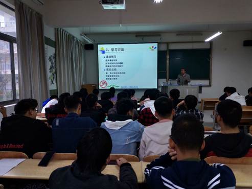 系主任崔智军从端正态度、学习方法、师资队伍、专业核心能力与主干课程等方面作了介绍。通过专业核心能力与主干课程的介绍,使学生了解到通过专业核心课程的学习后,应达到电路分析与设计能力、计算机辅助设计能力、信号系统分析能力、器件应用开发能力和电子系统设计能力。