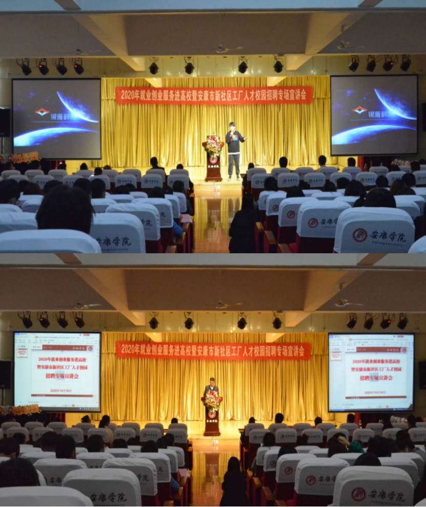 10月19日下午3点,就业创业服务进高校暨安康市新社区工厂人才校园专场招聘会在江北校区1401教室举行,买球体育官方网站党总支书记于咏梅和我院100多名应届生参加会议。