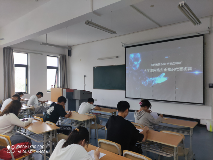 9月27日,买球体育官方网站组织学生在江北校区1321教室参加由陕西省委网信办、省教育厅主办、西北工业大学承办的第五届“网安启明星”大学生网络安全知识竞赛(初赛)。在院领导、专业课老师及带班辅导员的大力动员下,同学们积极报名、踊跃参与,共有82名学生参加。