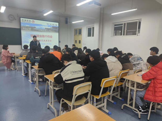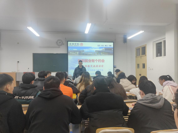 2021年12月11日下午,买球体育官方网站在江北校区教学楼1318教室召开了“我和就业有个约会”为主题的就业经验交流座谈会。此次交流座谈会邀请了2018级两名已经成功就业的学生分享他们的求职经历,电子信息工程专业的毕业班全部学生参加了此次会议。会议由辅导员成英丽老师主持。
