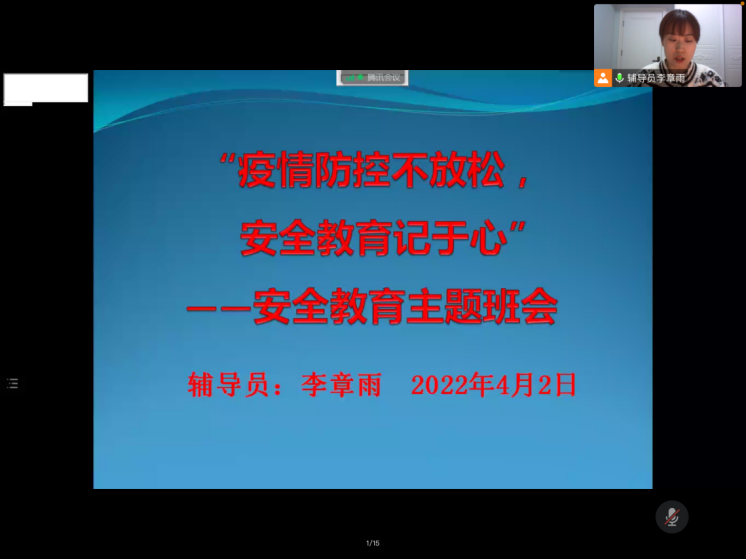 李章雨给所带班级全体学生召开安全教育主题班会