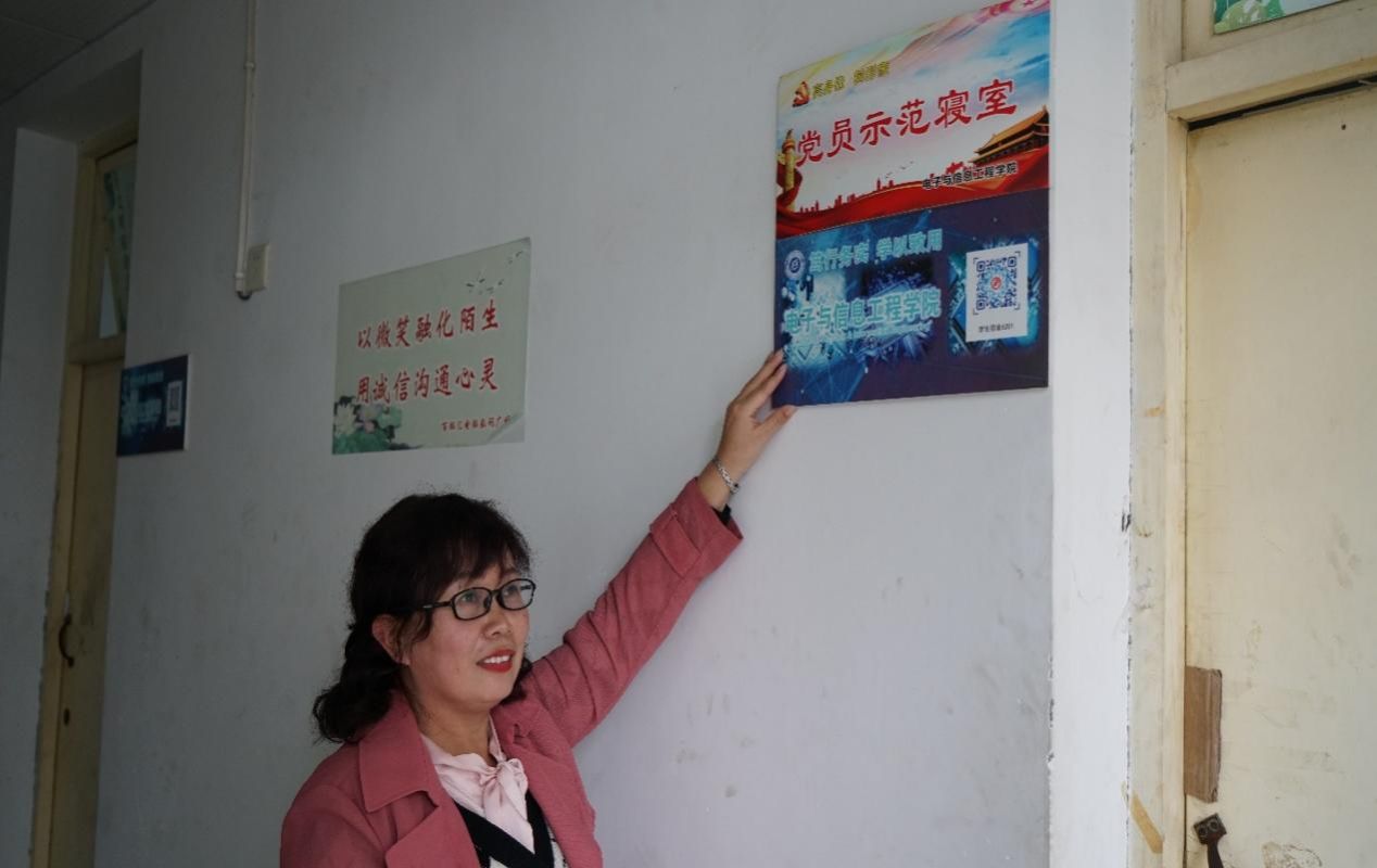 成英丽老师在为党员宿舍挂牌期间表示,“党员宿舍”不仅是荣誉,更是激励。学生党员要二十四小时亮出自己的身份,从学习到工作,从宿舍到班级,从班级到年级,以点带面,点面结合,发挥模范带头作用,推进学院优良院风学风舍风建设,真正实现“一名党员,一面旗帜”的引领作用。
