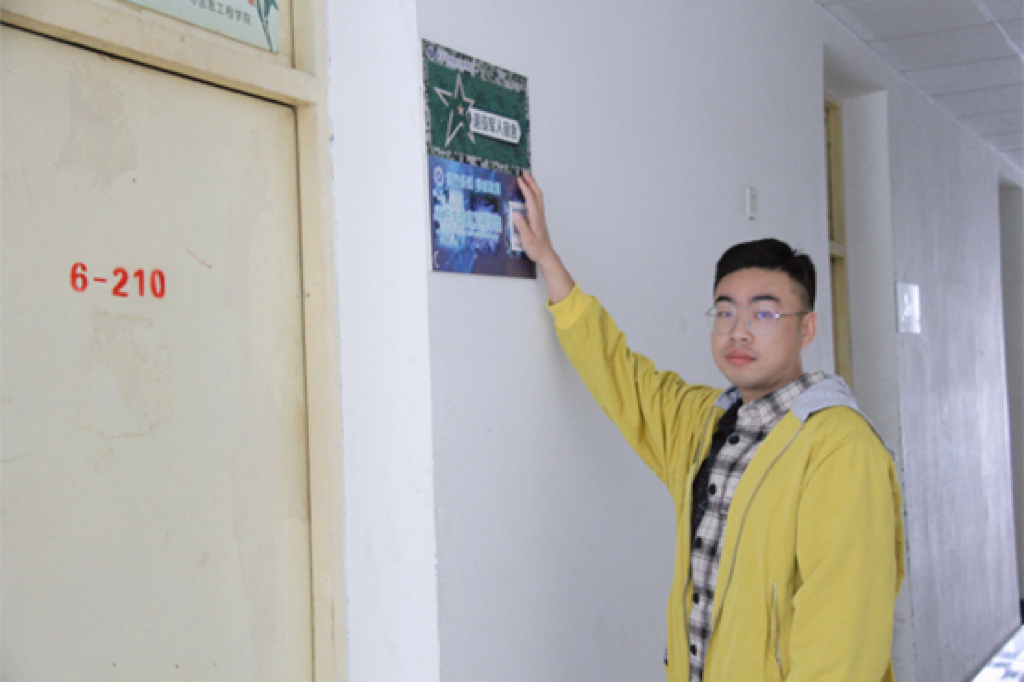 (石纭昊老师为国奖获得者学生宿舍授牌)