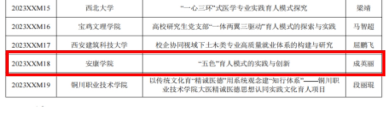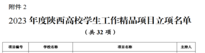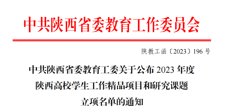 近日,中共陕西省委教育工委公布了2023年度陕西高校学生工作精品项目和研究课题立项名单,买球体育官方网站辅导员成英丽副教授主持的《“五色”育人模式的实践与创新》获批陕西高校辅导员工作精品项目立项。该项目组成员有学院党总支书记于咏梅,学工办主任石纭昊,辅导员张宇航、吕以宁和李章雨。