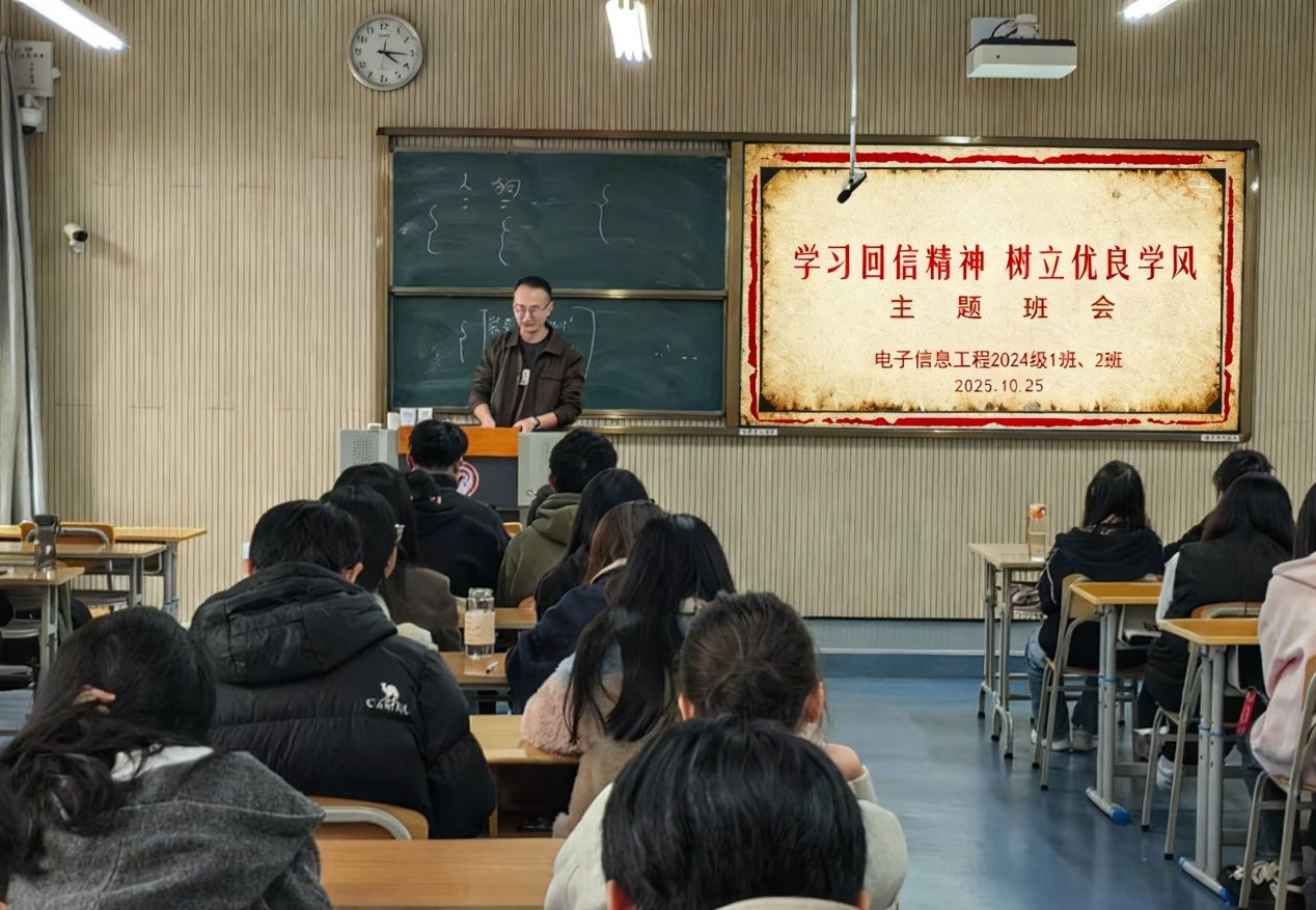 此次主题班会既是买球体育官方网站学习贯彻习近平总书记给特岗教师的重要回信精神的重要举措,也是学院加强学风建设的关键一步。未来,买球体育官方网站将持续以回信精神为引领,通过开展专题讲座、实践调研、学风评比等活动,将回信精神融入教育教学、学生管理全过程,引导广大电信学子以优良学风赋能成长,以过硬本领服务国家,在未来事业的发展浪潮中书写青春华章。