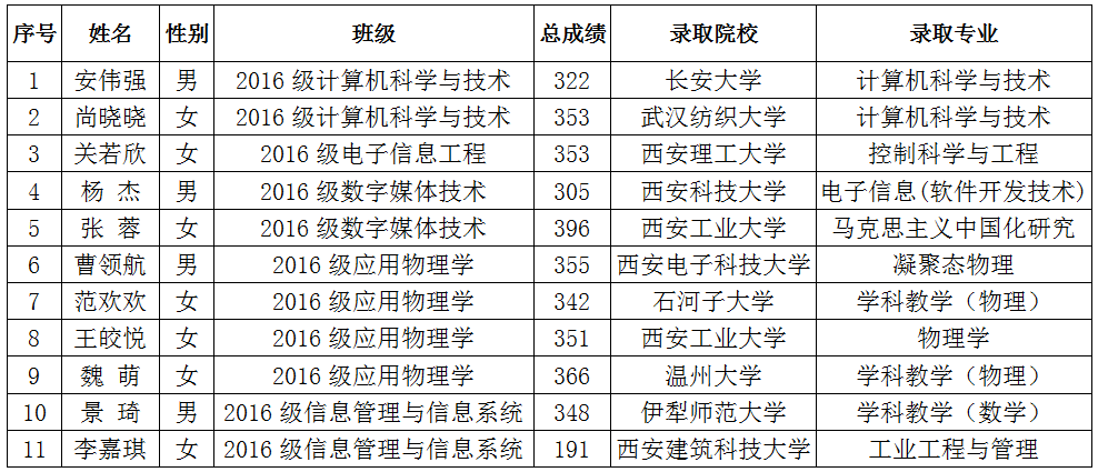 2020届毕业生考研情况汇总表