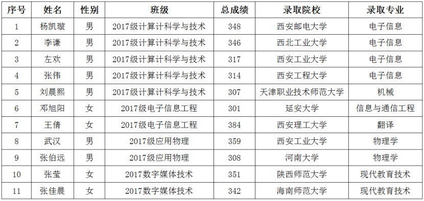 2021届毕业生考研情况汇总表