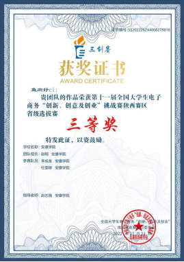 全国大学生电子商务“三创赛”获奖证书