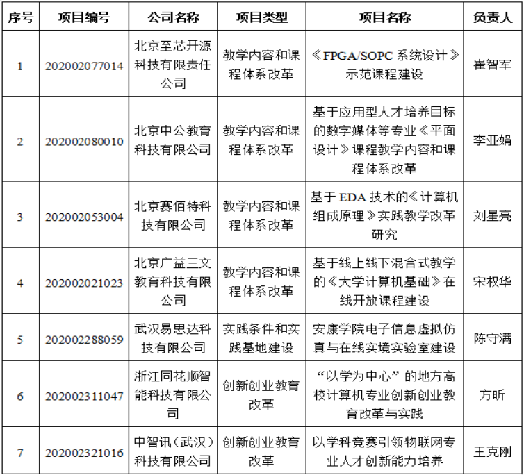 链接:教育部高等教育司关于公布2020年产学合作协同育人项目立项名单的通知http://www.moe.gov.cn/s78/A08/tongzhi/202103/t20210324_522389.html