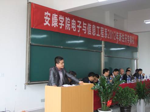 10月11日,电信系2012级新生开学典礼在江北校区1303教室隆重举行,2012级453名新生,系主任张东红、系总支书记李红兵、教学副主任陈守满、科研副主任王庆春、系办学办主任、教研室主任、教师代表出席了典礼。大会由系总支书记李红兵主持。