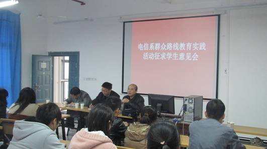 为扎实推进党的群众路线教育实践活动,2013年11月22日下午2点,电子与信息工程系在科技楼B704室召开“群众路线教育实践活动征求学生意见会”,系领导班子,49名学生干部代表参加会议。会议由党总支书记李红兵主持。