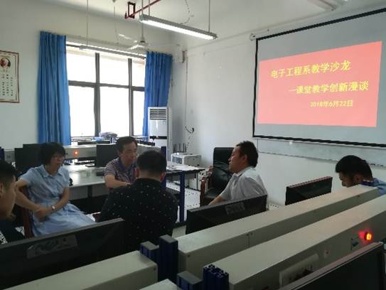 为了巩固教学中心地位,提高课堂教学质量,更好领会教育部“新时代全国高等学校本科教育工作会议”的精神,2018年6月22日,买球体育官方网站电子工程系在逸夫科技楼B401实验室以“课堂教学创新”为主体开展了教学沙龙活动。学校教学督导梁俊龙、买球体育官方网站副院长王庆春和电子工程系全体教师和电子信息工程专业2017级和2016级的部分学生代表参加了教学沙龙活动。